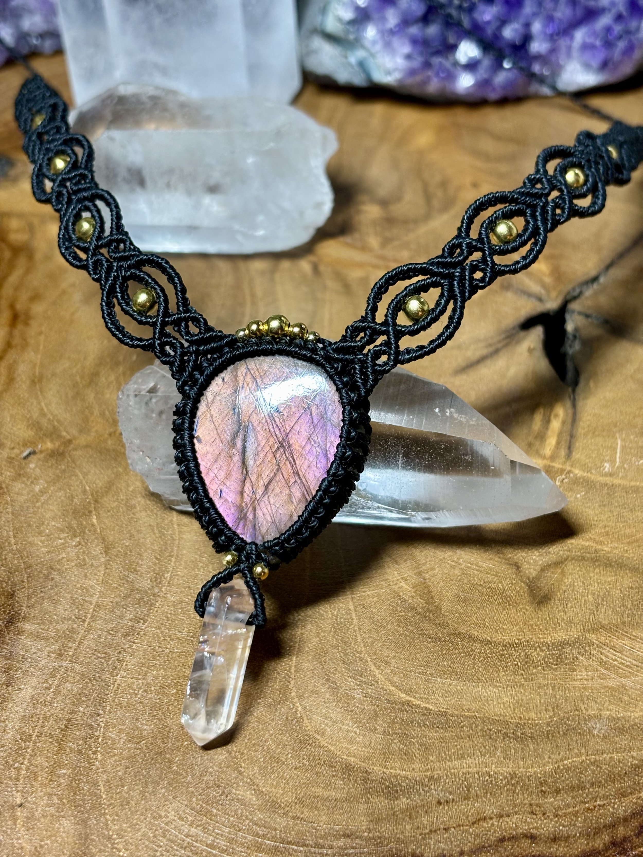Chaque bijou que je tisse est créé comme un talisman, un objet magique et porteur de sens, en lien direct avec les vertus des minéraux qui le composent.