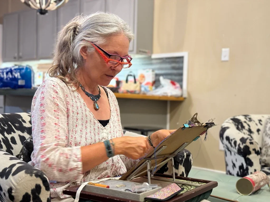 Je commence à tisser des bijoux, puis à partager mes créations au marché d'été de mon village. Fin 2023, l'aventure prend une nouvelle dimension : mon chum, mon chat et moi partons pour cinq mois dans le Sud des États-Unis en mini camping-car. Inspirée par la beauté sauvage des paysages, je tisse de nombreux bijoux. C'est là-bas que le nom BeLight Creation s'impose à moi — un écho à la lumière et à la légèreté que je cherche à transmettre.